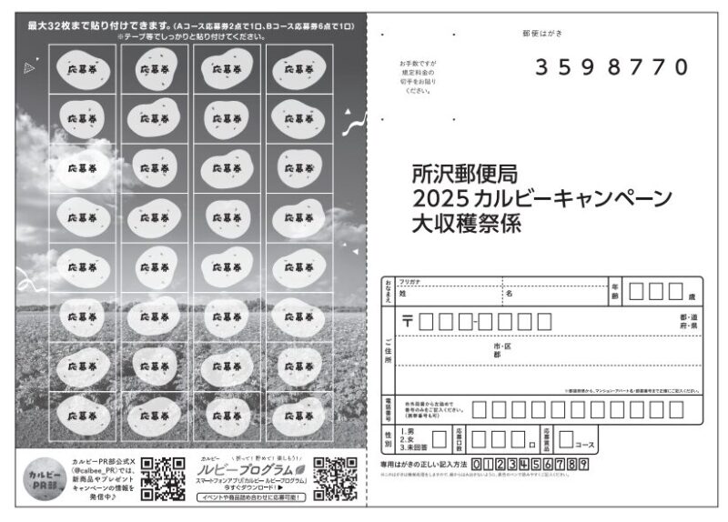 ダウンロード版の応募はがきには、最大で32枚のカルビー応募券を貼りつけることができます。